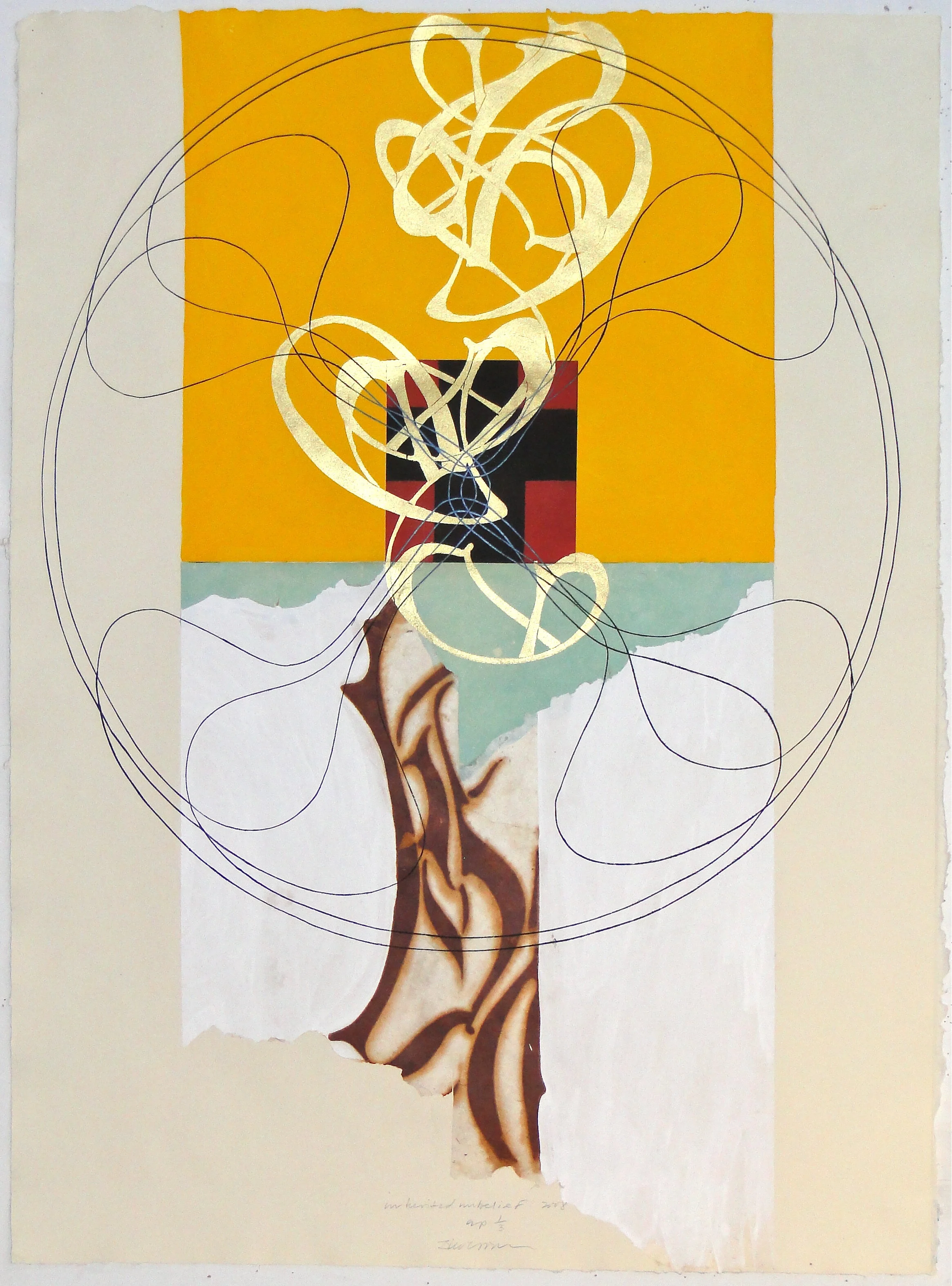 STEVEN SORMAN, “outside in/inside out xviii,” 2010, watercolor, gesso, collage, on 1923 J Whatman Paper, 45” x 31” (framed)