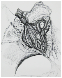 Julia Fernandez-Pol, “Reptillian,” 2009, ink on paper, 34 1/4” x 26 3/4”