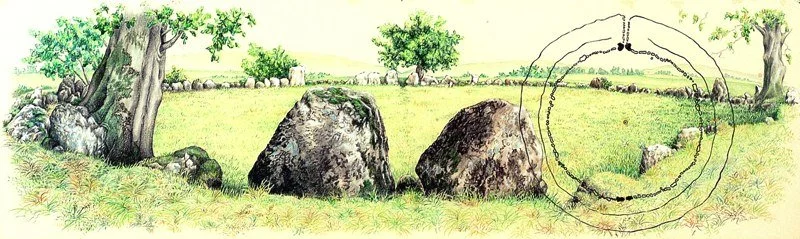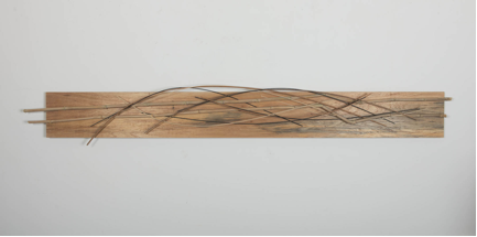 Leila Daw, Lough Gur Alignment, 2006, mixed media on paper with welded aluminum and wood, 17 1/2” x 48 1/2”