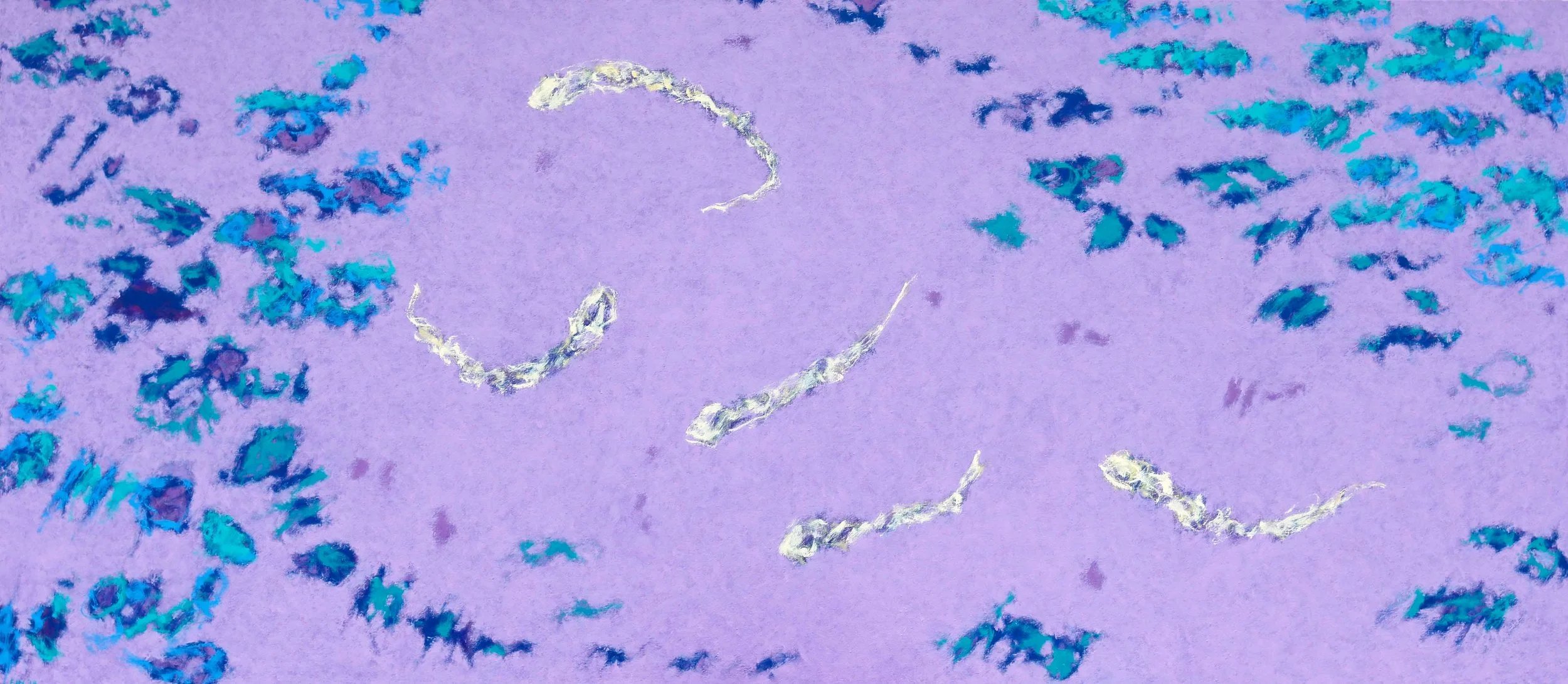 Katy Stone, “Other World (Bling Seep),” 2015, acrylic and glitter on duralar, pins, 9” x 4”