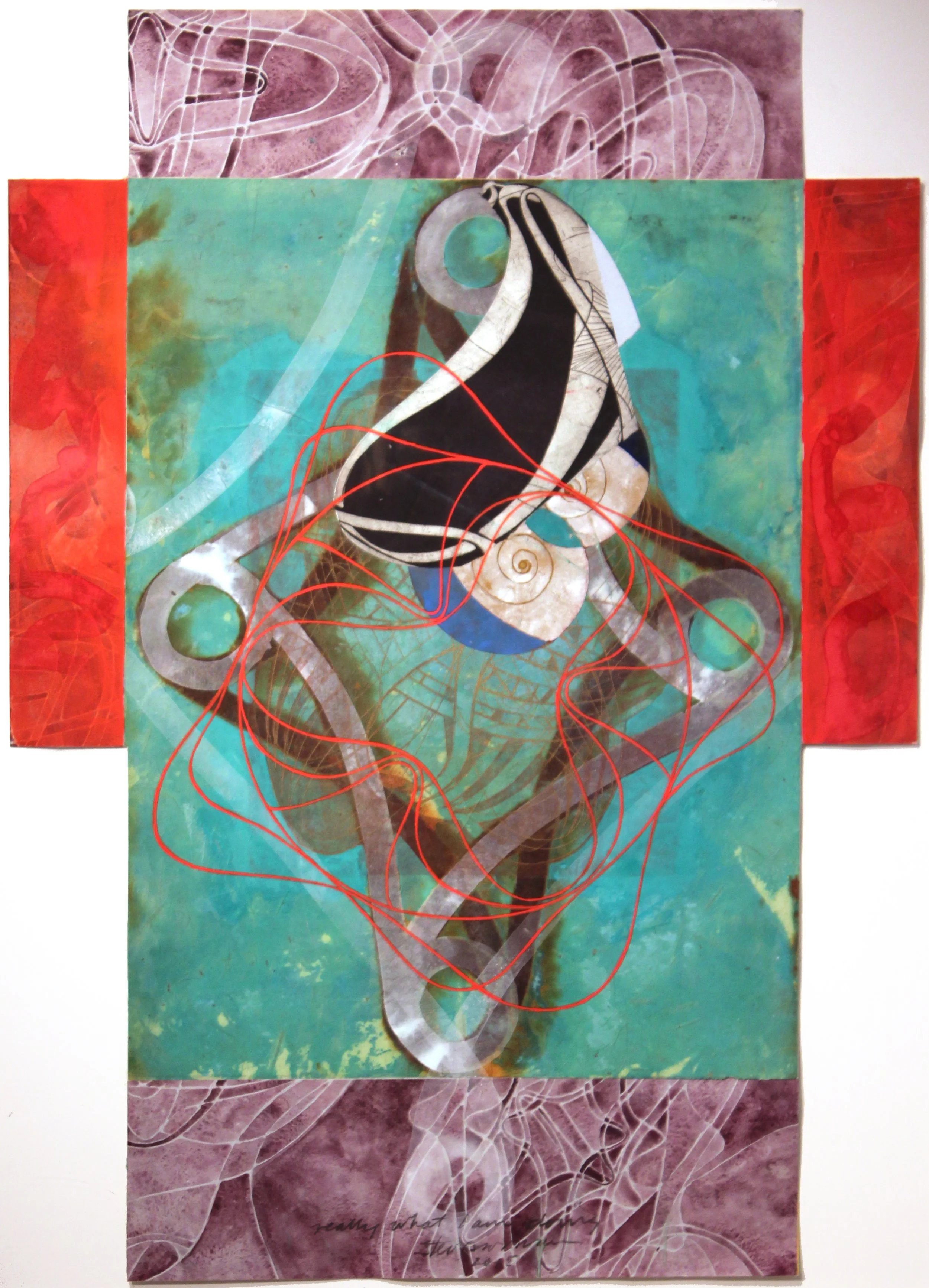 Steven Sorman, “really what I am doing,” 2008, mixed media, collage on various papers, 36” x 26 1/2”