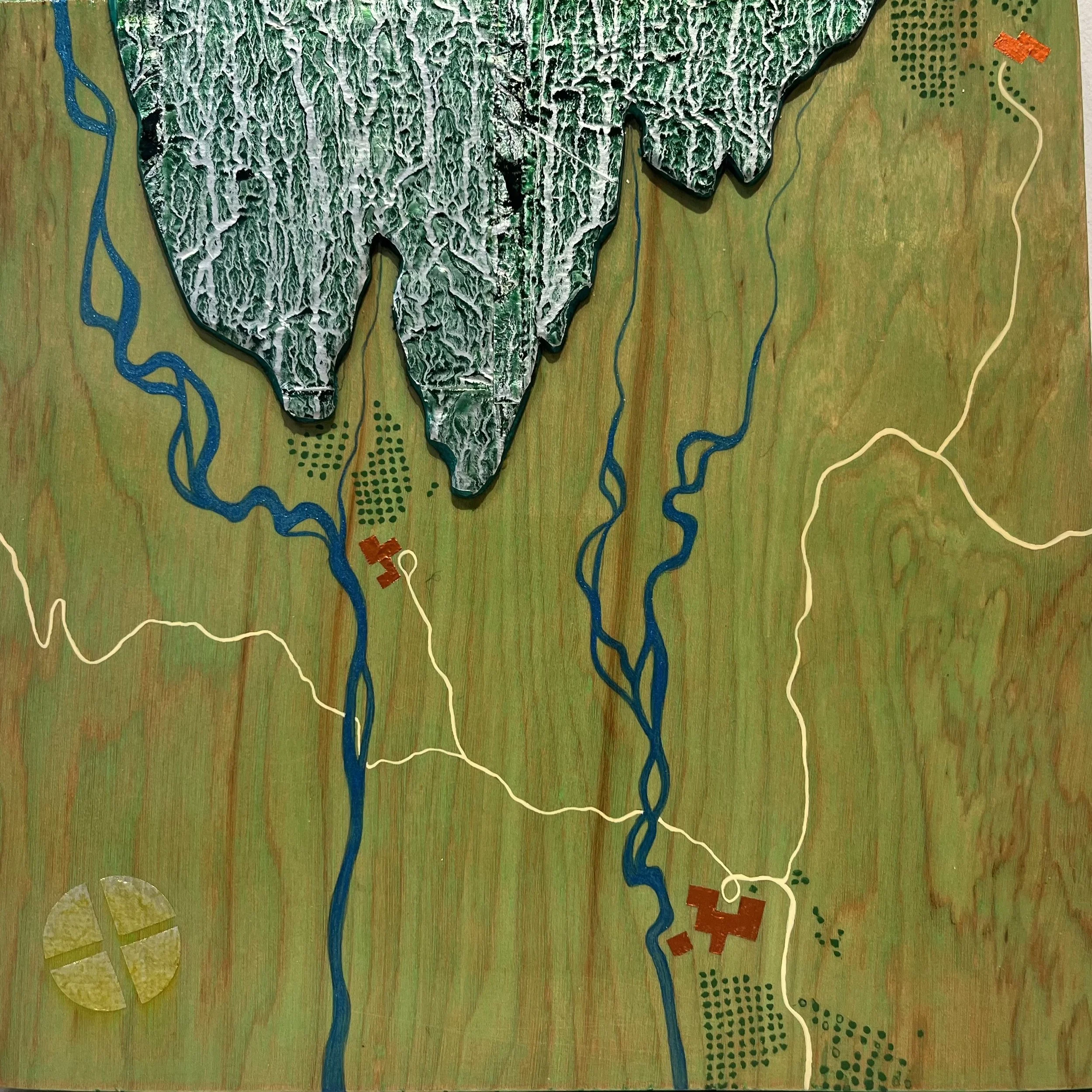 Leila Daw, “High Orchard Area,” 2015 mixed media on panel, 9 1/4” x 9 1/4”